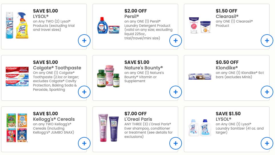 Expect savings on the national brands you love including: Campbell’s, Kellogg’s, Hormel, Newman’s Own, Betty Crocker, Purina, Glade, Hefty, Oscar Mayer, Jimmy Dean, Colgate and more.